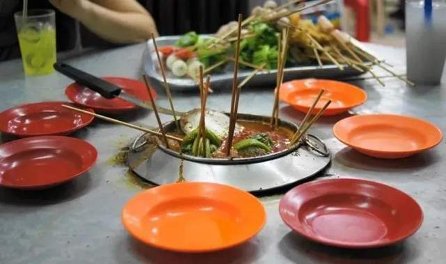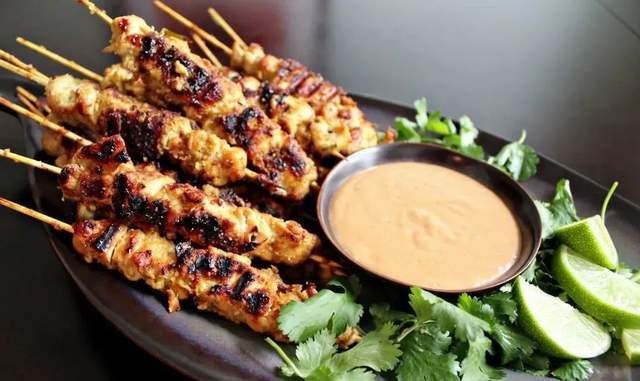 沙爹简单来说就是一串烤肉配上微辣的花生酱,肉的选择可包括鸡,牛和羊,更刺激的选择也包括野猪和兔。