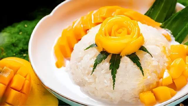 玻璃市离泰国那么近,这里的美食或多或少都会受到泰国的一点影响。最为明显的,就是芒果糯米饭了。这和泰国芒果糯米饭的唯一不同就是,此美食在玻璃市只用本地的mempelam芒果(比较甜也比较香)。