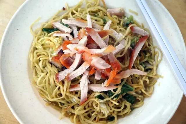 一盘传统的干捞面里面有弹牙的面条,叉烧和肉碎。此面普遍参拌酱油和肉汁,有些小贩也选择加入炸猪油,虽然同时添加了不少罪恶感,但炸猪油真的让人招架不住!