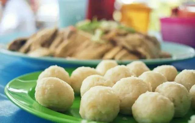 马六甲著名的鸡饭团,基本上就是普遍的鸡饭,但并非和一般的散饭一起食用,而是配上饭团。